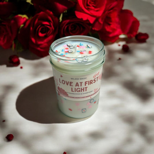 “Love at First Light” Strawberries & Champagne Candle for Valentines Day